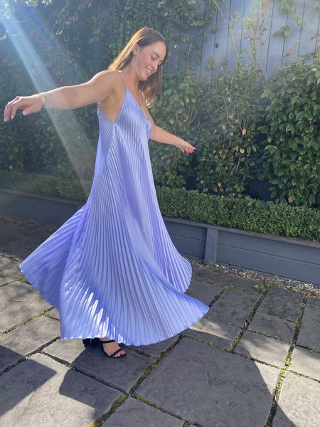 This pleated slip dress features adjustable straps, a V neckline and maxi length flowing pleats. The design allows for a floaty relaxed fit.
