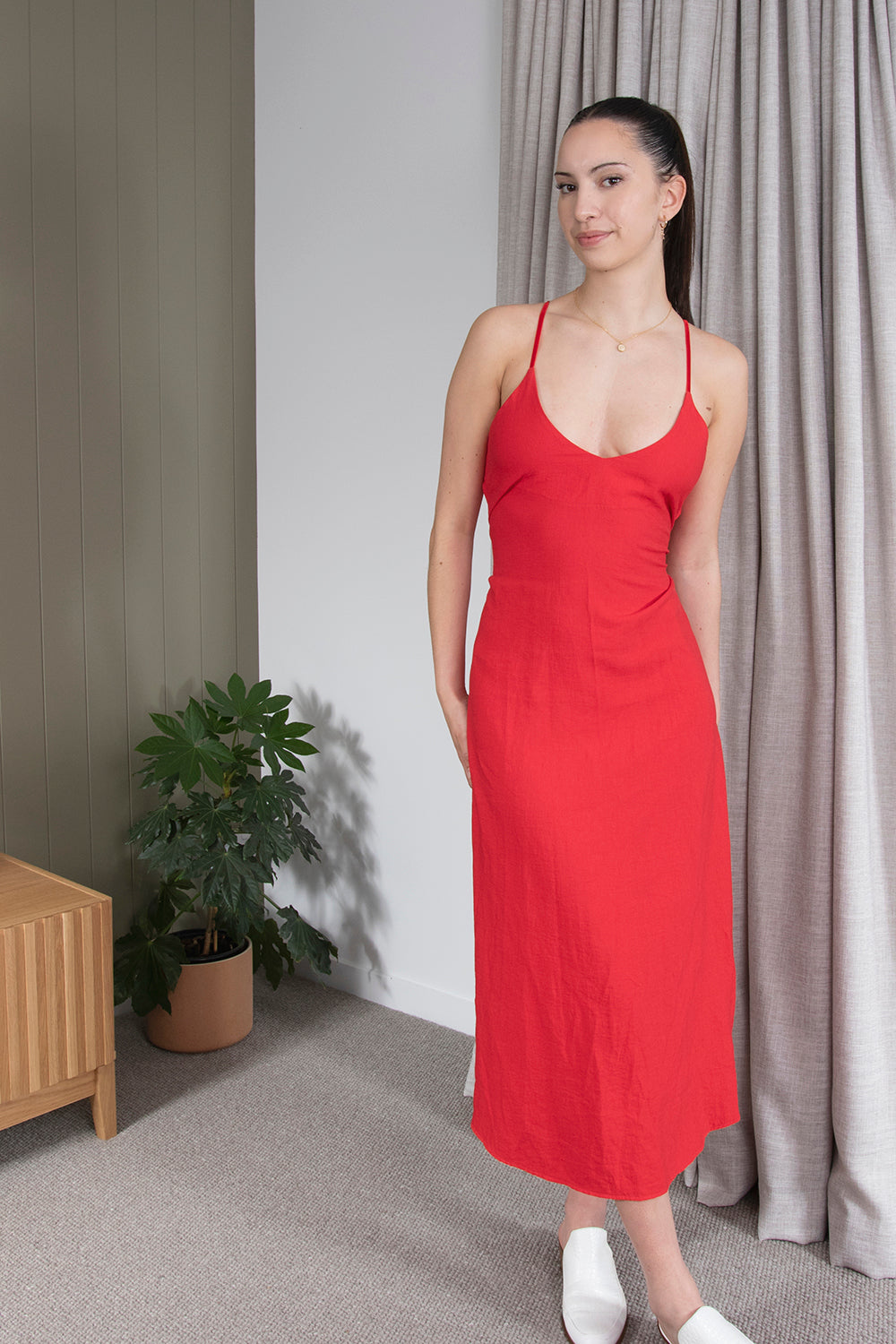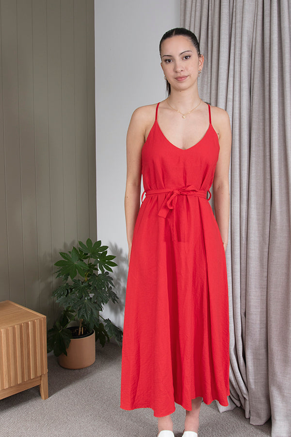 The Cali dress from Dunedin label Danger Birds is a classic red dress in a versatile design, depending on how you choose to style it with the waist tie it will take you from day to night.