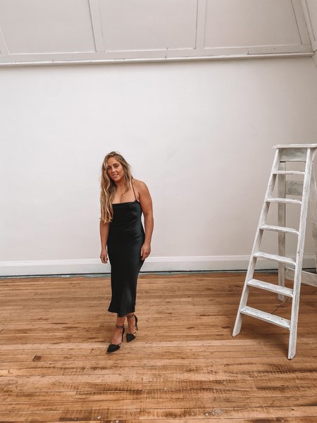 The ultimate LBD. The Seraphine dress flatters with it's slip like fit which hugs in all the right places. This piece features a straight neckline and shoestring straps which tie into the rouleau laced low cut back.