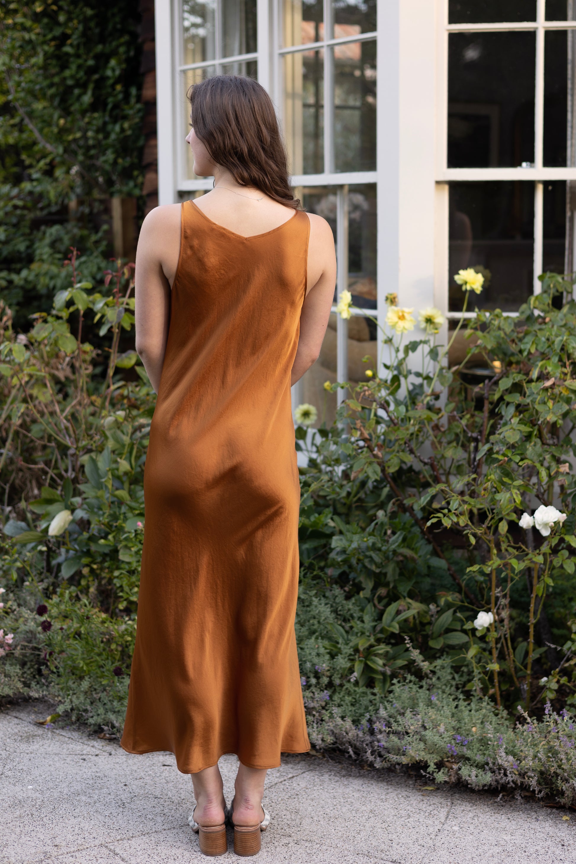 A simple and sophisticated full length dress with the signature Juliette Hogan V neckline.