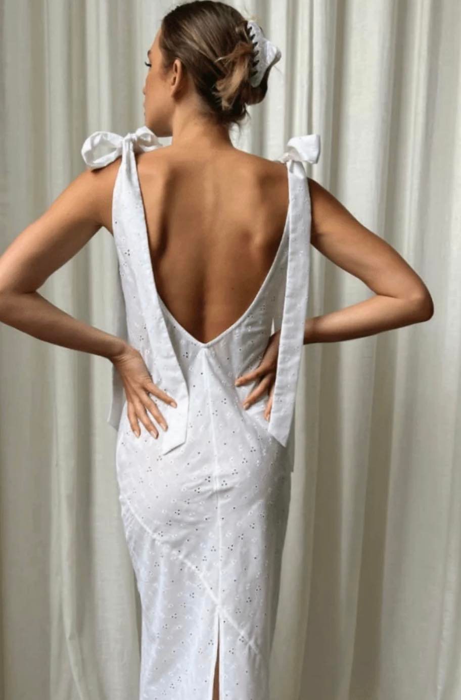 The Wilmer dress is a CC classic. This is the perfect white dress for your hens party or your second wedding dress, or just a summer party where you want to stun.